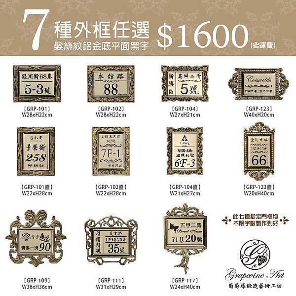 7種外框任選,1600元就可以有一個別緻的藝術門牌