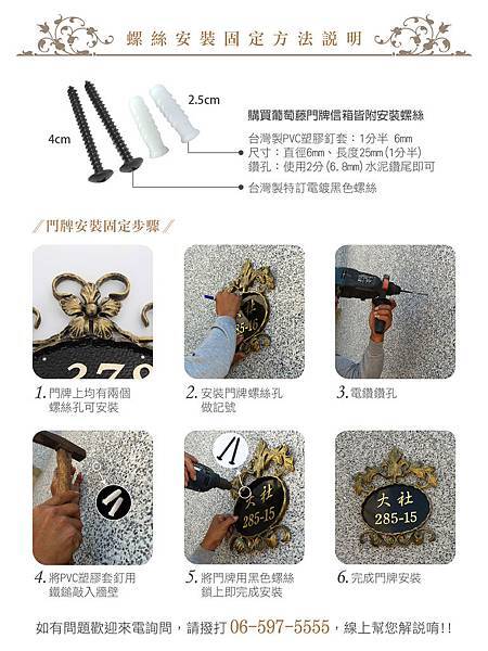洽詢訂購鍛鐵門牌電話:06-597-5555